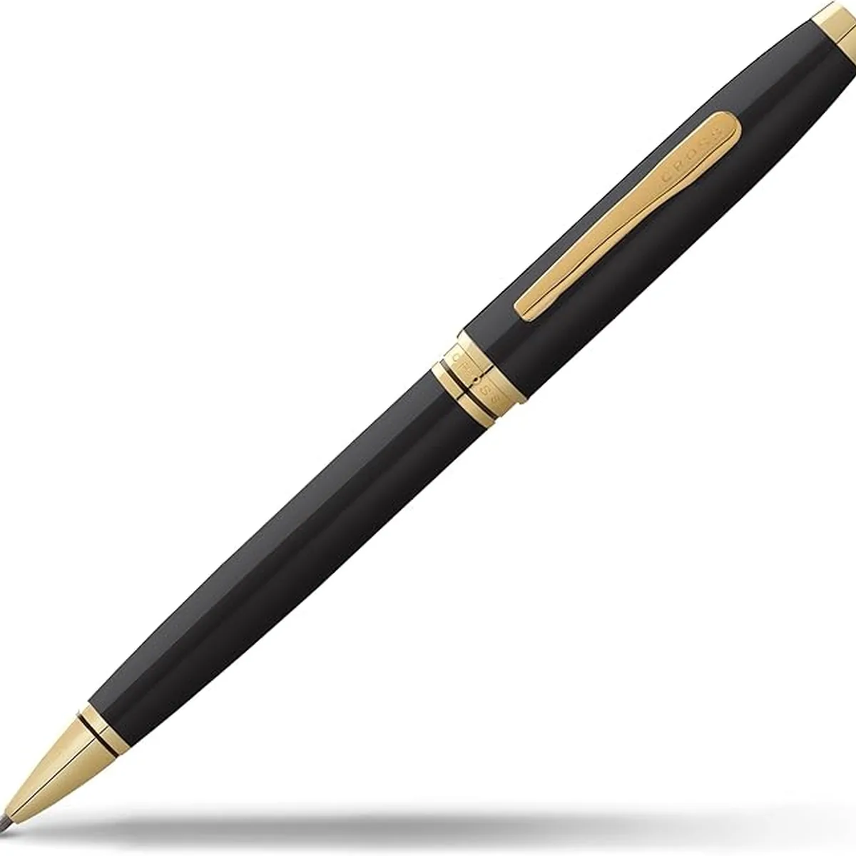Na versão Esferográfica, o contraste entre a laca preta e os acabamentos dourados traduz um estilo clássico e atemporal. O mecanismo de giro garante acionamento rápido e preciso, enquanto o refil Cross 8513 (ponta média) oferece escrita suave e confiável, ideal para assinaturas e uso diário. Uma peça que une praticidade, robustez e elegância discreta, pensada para quem valoriza presença em cada gesto de escrita.