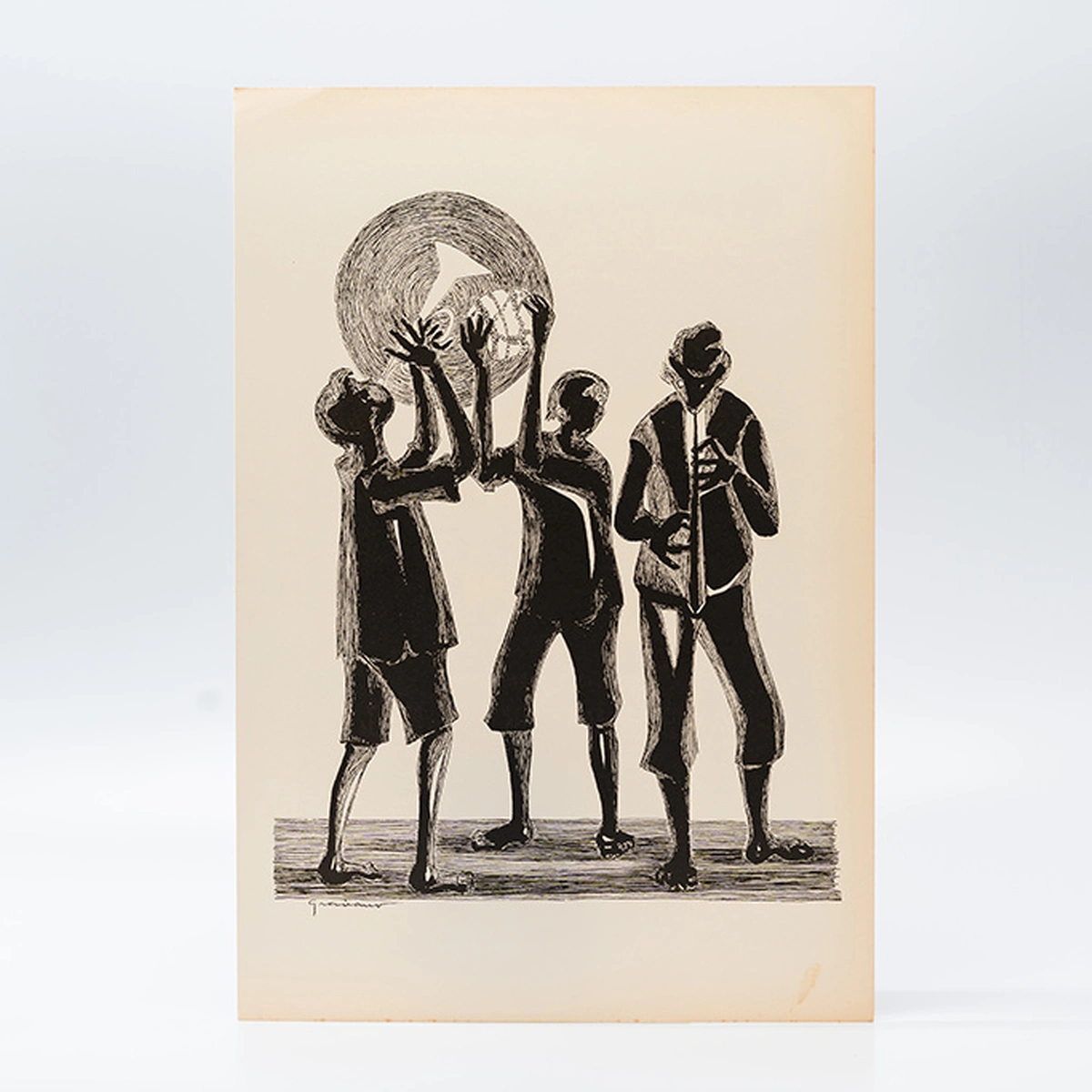 Gravura Clóvis Graciano nº 11 – Três Músicos ao Pôr do Sol