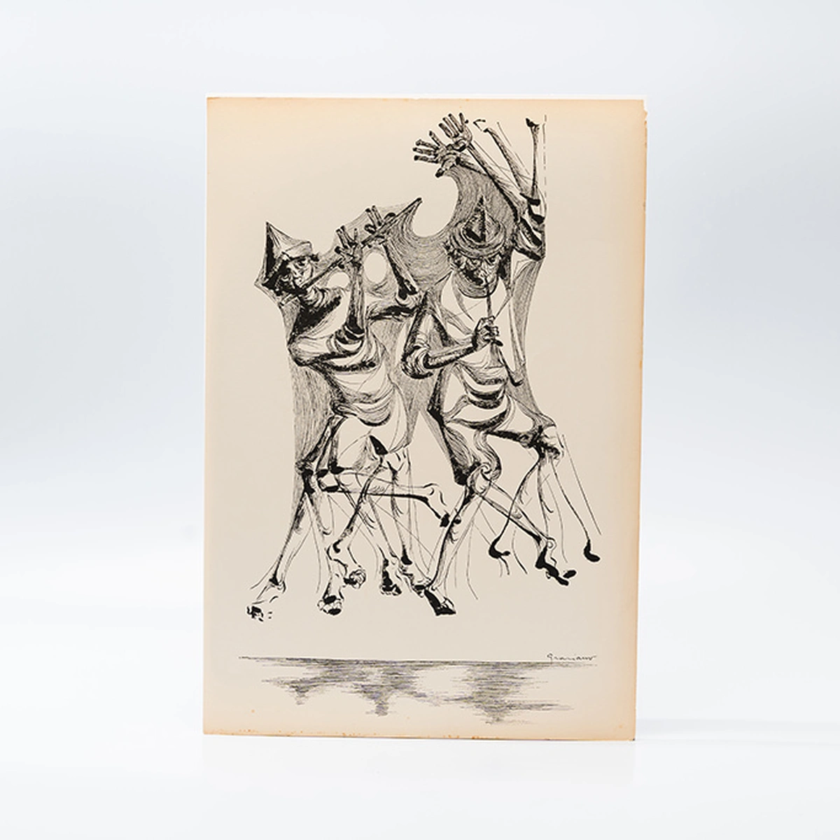 Gravura Clóvis Graciano nº 21 – Dois Músicos em Salto com Instrumentos de Sopro