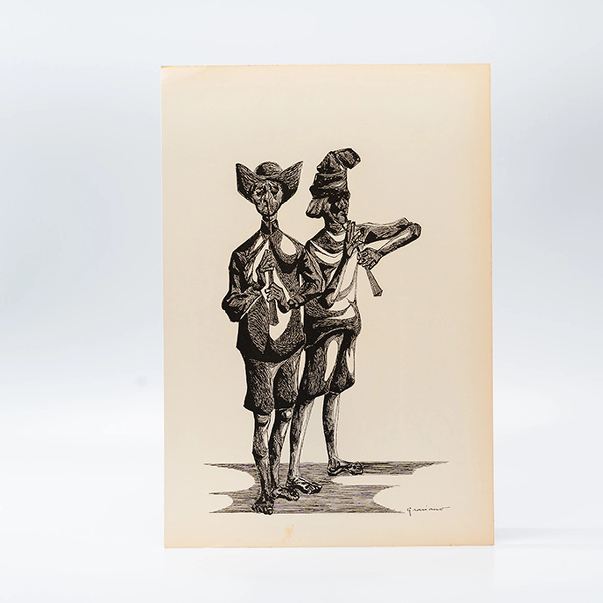 Publicadas pela Editora Cultrix em 1966, as gravuras da coleção Mestres do Desenho apresentam uma seleção de obras gráficas de Clóvis Graciano em tiragem limitada. Com traço firme, figuração estilizada e forte conteúdo social, essas estampas traduzem com precisão o universo plástico do artista, um dos expoentes do modernismo figurativo brasileiro.