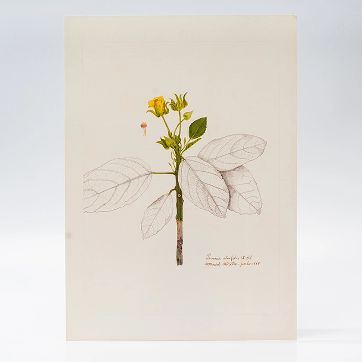 As obras disponíveis na 1949 Fine Gifts pertencem à edição Maria Werneck de Castro – Aquarelas: Espécies Vegetais em Extinção, estojo biográfico com 20 gravuras em papel de alta qualidade (47 × 34 cm). Um conjunto raro, que preserva em papel a beleza silenciosa de plantas ameaçadas e o legado de uma artista que compreendia a natureza com o olhar da arte e a precisão da ciência.